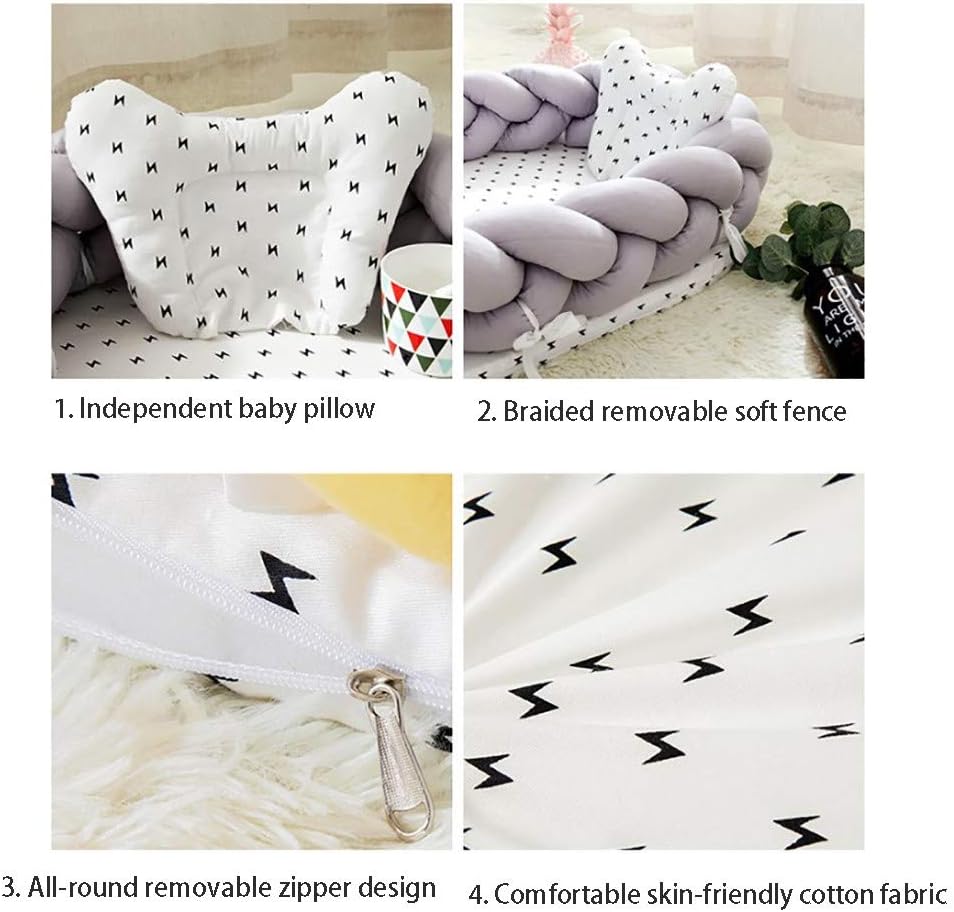 Baby bassinet for bed portable baby lounger for newborn crib breathable and sleep nest with pillowdescriptiongenderunisexpattern typecrownmaterialcottoncoloras the picturesize7451cmage range0 4msleeping size5634cmpackage includedmat cover1.